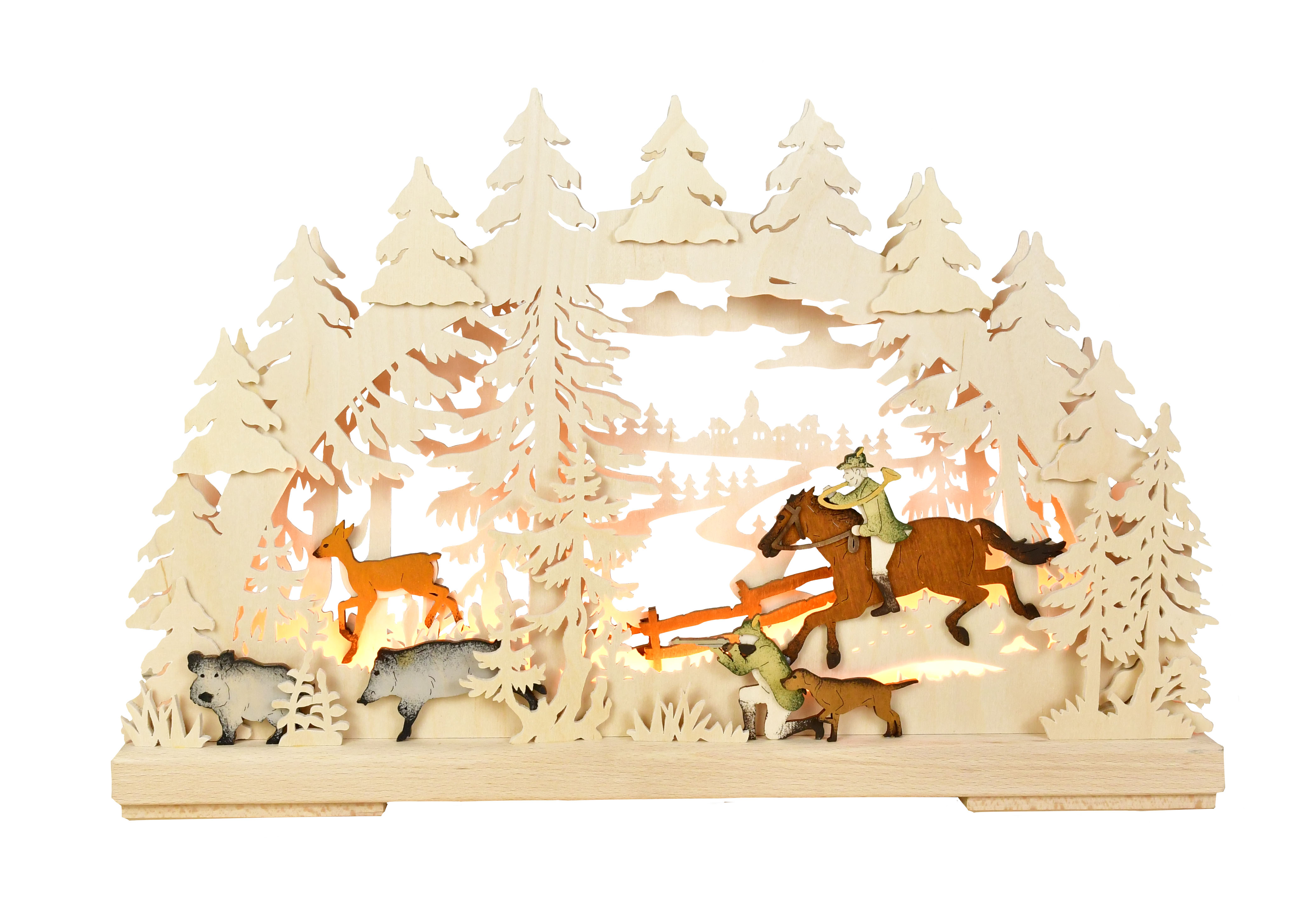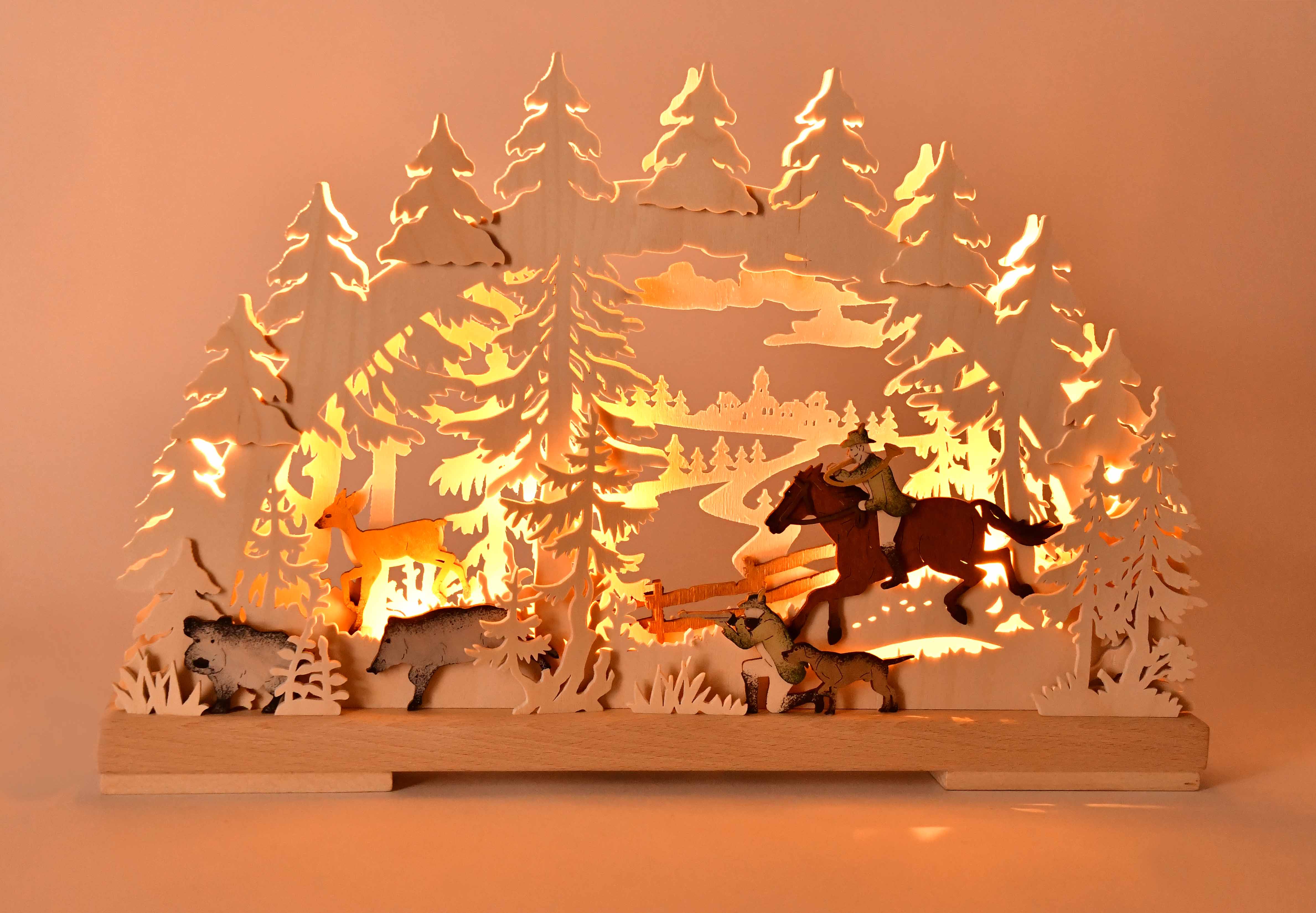 Kleiner Schwibbogen mit lebendiger Jagd-Szene